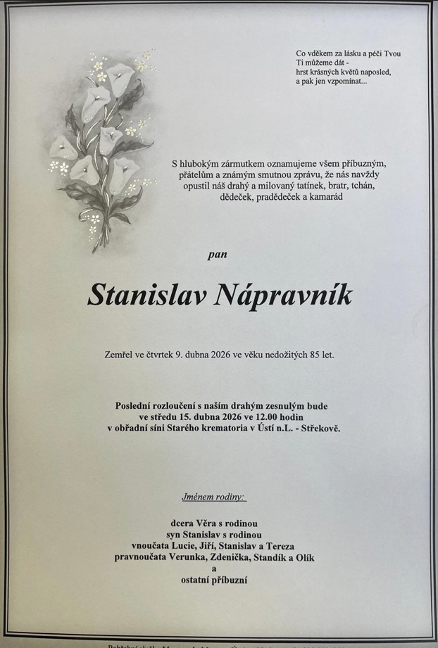 S hlubokým zármutkem Vám oznamujeme, že nás 9. 4. 2026 navždy opustil dlouholetý člen pan Stanislav Nápravník. Upřímnou soustrast celé rodině. 🖤